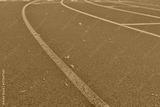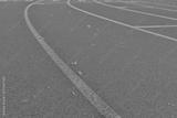 View of an athletic track. Tartan surface on an athletic field with lanes. Concept of sports, jogging and athletics.
