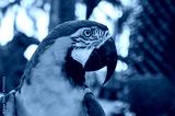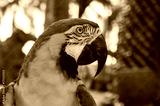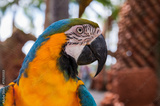 the head of a large bright parrot