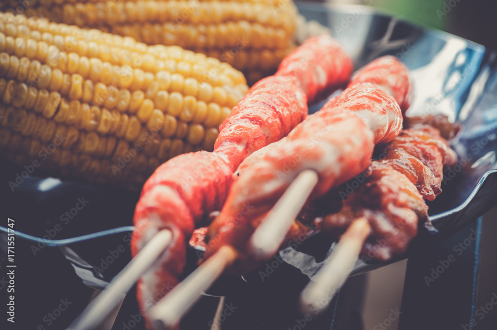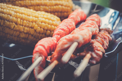 fried corn and shish kebab