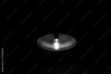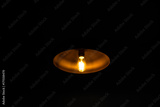 close up of lamp with light on in dark room