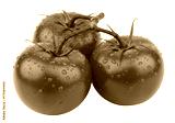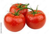 Isolated vine-ripened tomatoes with water droplets, garden fresh, nutritious and healthy food