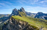 Hiking to famous Seceda peak in Dolomites Alps, South Tyrol (Alto Adige),