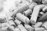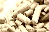 closeup wood pine pellet for pet litter or bed on white table background