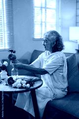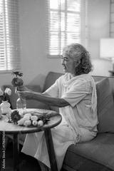 Asian older woman happy arranging fresh flowers home living room senior female enjoying tranquil domestic hobby cheerful decorating lifestyle indoor space