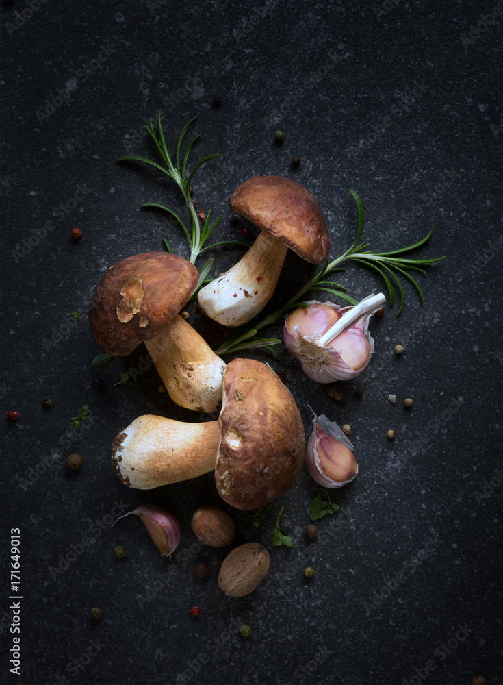 organic porcini Mushroom; seasoning forest Mushroom and Italian Spices Herb