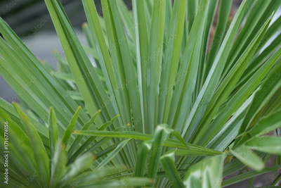 green tropical palm leaves with natural texture. Macro palm frond background for summer, exotic and nature concepts.