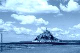Mont Saint-Michel, France, on a sunny summer afternoon.