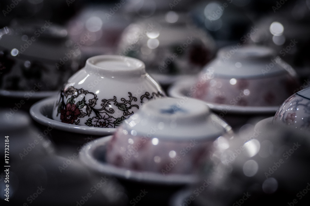 empty inverted tea cups