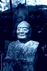 Ancient stone statue at Mitaki-Dera Temple in Hiroshima, Japan