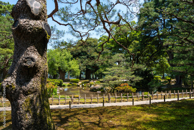 River and forest serenity in Kenroku-en Garden, Kanazawa, Japan