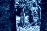 Funerary monoliths standing in Toraja, Sulawesi, Indonesia