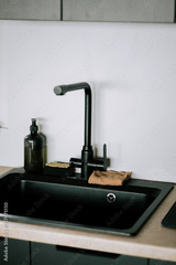 Modern black sink setup in a stylish kitchen with minimalist design and clean lines