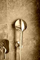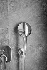 Modern shower head design mounted on tiled wall in a contemporary bathroom setting