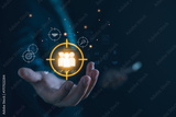 Customer relationship management concept, Businessman manage on crm loyalty, online business workflow technology, customer service system build brand loyalty marketing.