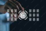 Document management concept, Businessman check electronic file data on digital on virtual screen, Document Management System and process automation to efficiently business.