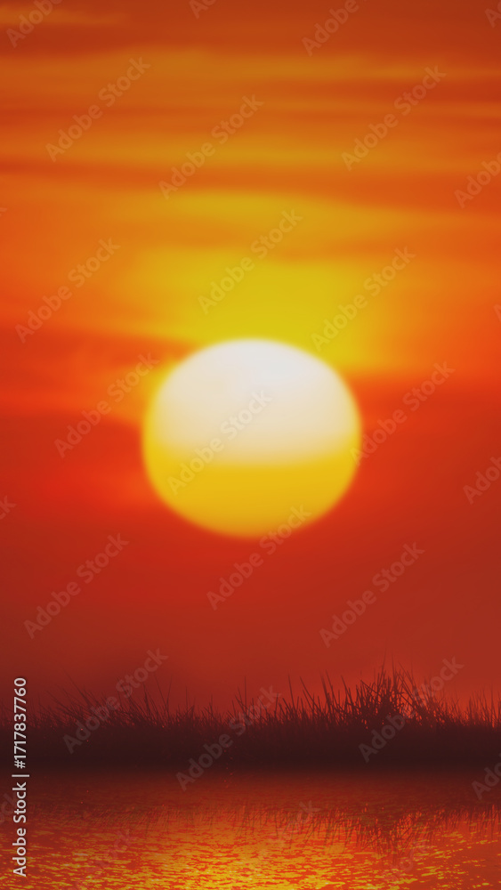 countryside landscape and calm river at sunrise