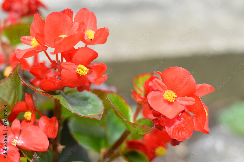Red wax begonia flowers closeup