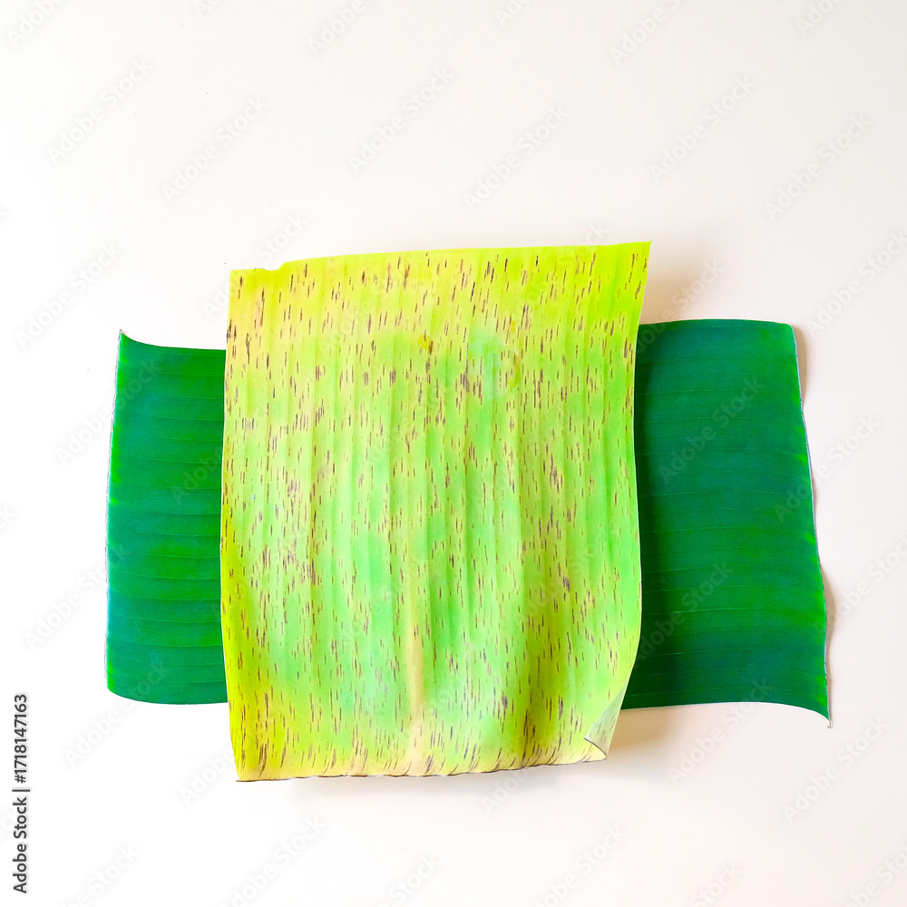 Fresh Green yellow leaves of banana tree on background.