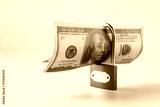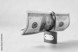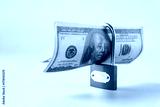 Locked Blue Padlock with bank note,concept of financial safety.