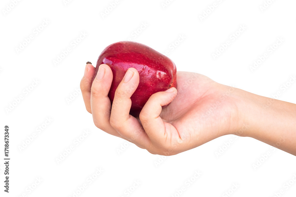 fresh red apple in hand isolated on white background