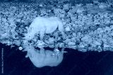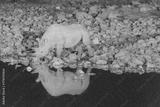 Night shot of a black rhinoceros - Diceros bicornis- approaching a waterhole in Etosha national park in Namibia.