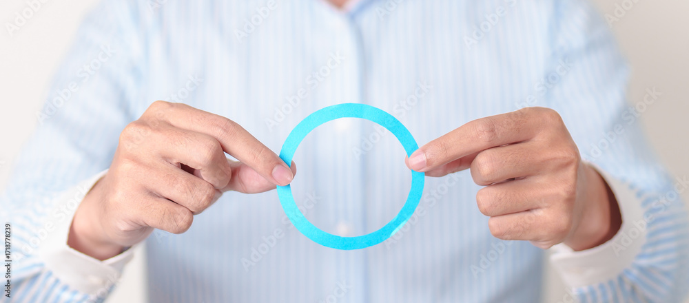 man with Blue Circle for World Diabetes Day, Blue November Health month, Diabetes awareness, Blood sugar check, Insulin, Glucose screening, Healthy lifestyle, Chronic disease checkup