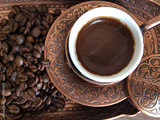 a delicious coffee and coffee beans.I enjoyed it.break.hot drinks.