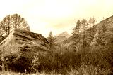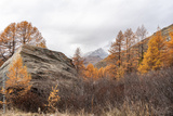 Wonderful hiking area in Zermatt with the yellow conifers. Switzerland.