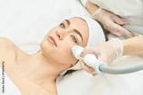 Female caucasian adult receiving facial skin treatment in spa setting with advanced skincare technology.