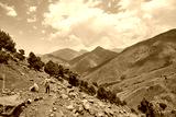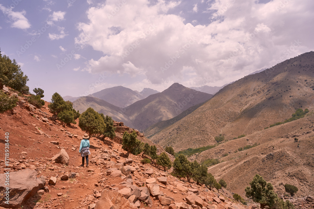 A child hiking in the mountains
