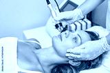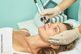 Caucasian female receiving facial treatment in spa relaxation and skincare concept for adults.