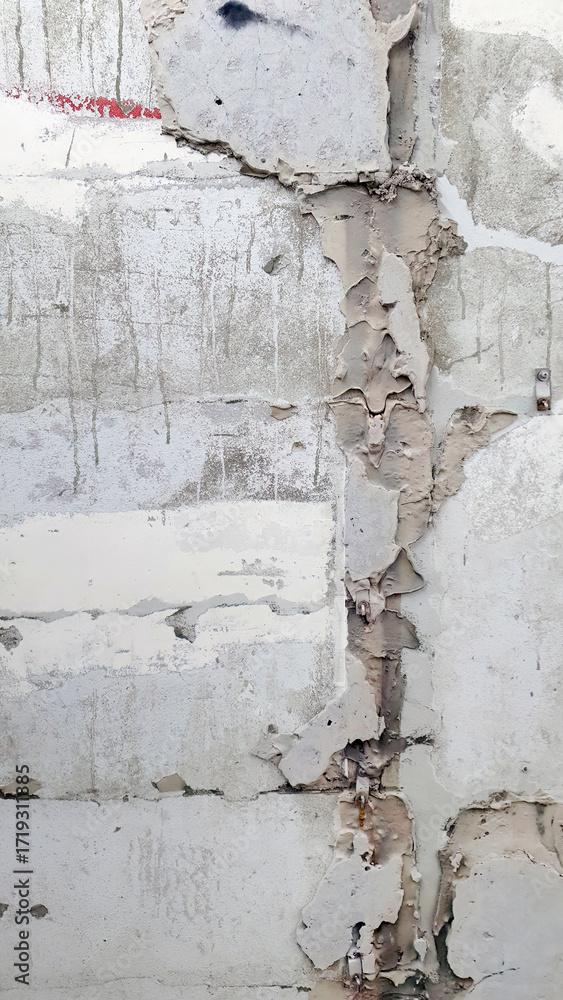 Close up Under construction, demolishing, showing peeling texture of existing plaster wall, abstract, arts, for background or backdrop for wallpaper or copy space, vertical