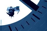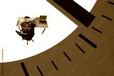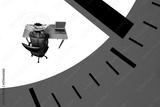 Composite creative art collage of puzzled man freelancer sit office table chair laptop time dial expire isolated on painted background