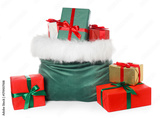 Santa Claus bag with Christmas gifts isolated on white