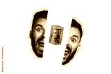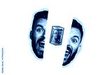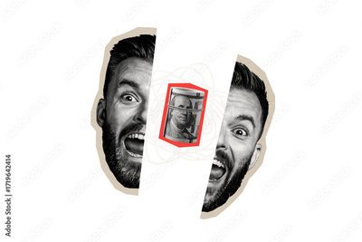 Composite trend artwork sketch image photo collage of young man divided half sad face headache tired scream line money profit roll dollar