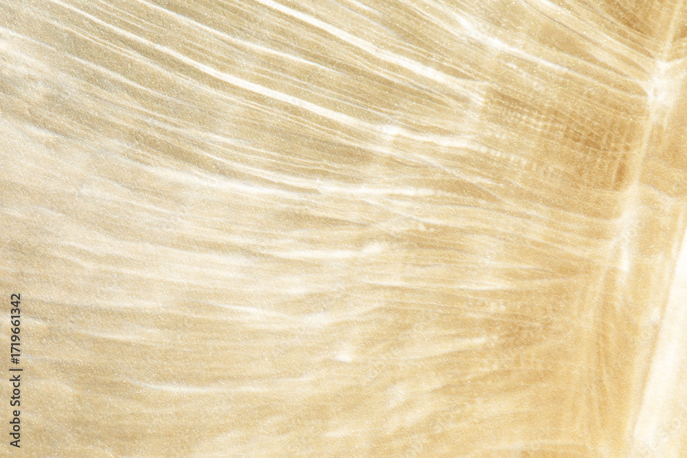 Abstarct sunlight shadows golden background with flare and glare from glass top view. Natural abstarct aesthetic mockup with caustic effects for design and presentation.