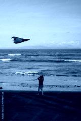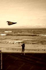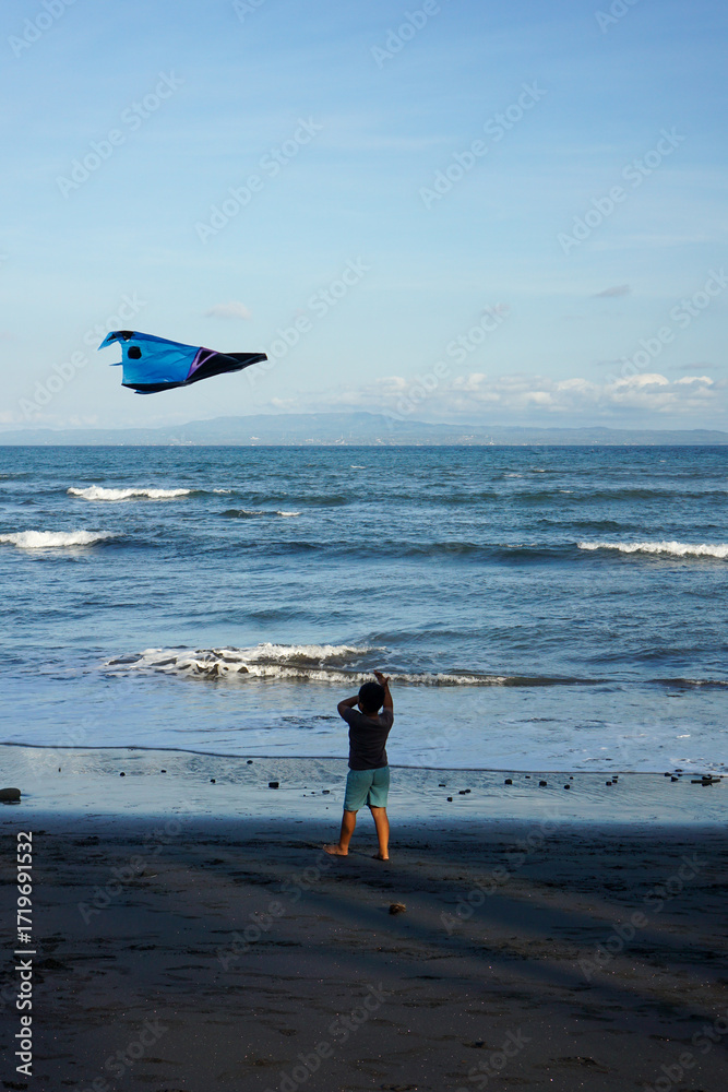 Children playing kites on Saba Beach, Gianyar, Bali.