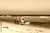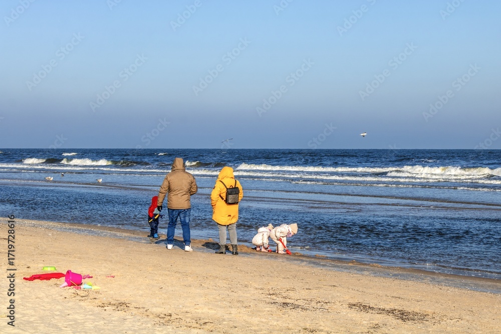 ahlbeck, deutschland - eine familie am strand im winterurlaub