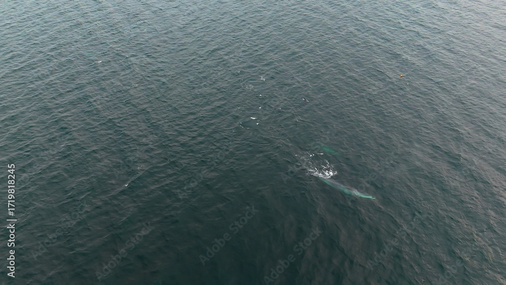 Aerial view of two fin whales, Balaenoptera physalus, hunting in Donegal Bay, Ireland