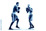 Boxers in action. Isolated in white background. Boxing. Two professional boxers participate in a boxing match. Boxing match