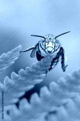 Blue Banded Bee (Amegilla cingulata) is a species native to Australia, perched on leaves.
