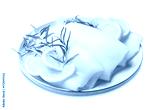 Pieces of raw squids with rosemary and lemon isolated on white