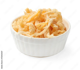 Dried squid shavings in bowl isolated on white