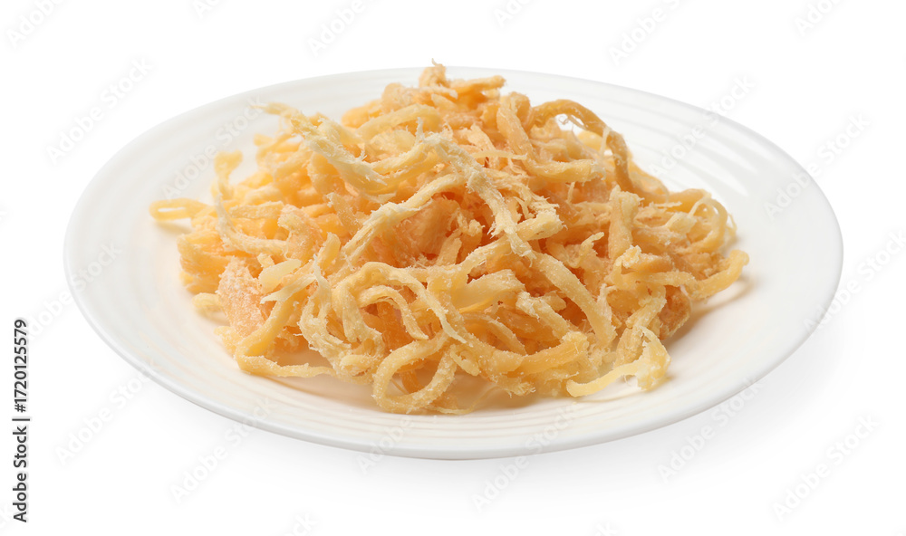 Tasty dried squid shavings isolated on white