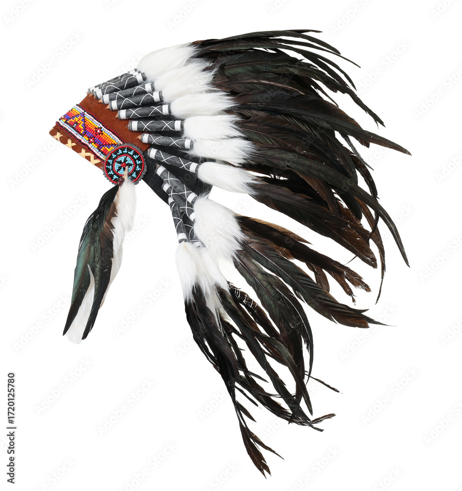 Traditional warbonnet (Native American chief headdress) isolated on white