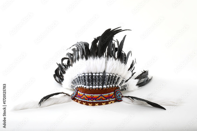 Traditional warbonnet (Native American chief headdress) isolated on white