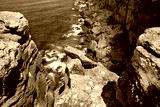 Peniche cliffs near Cabo Carvoeiro with sedimentary carbonate rocks from the jurassic in Portugal, Europe