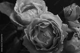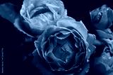 Close-up soft focus pink cream Rose Flower bud petals, leaf bouquet on black. Natural dark background.