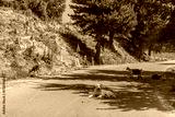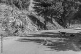 Goats and a dog on the Road 82 near Langada pass on Peloponnese peninsula, Greece