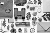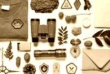 Set of scout supplies on white background